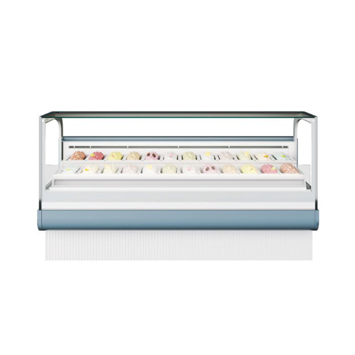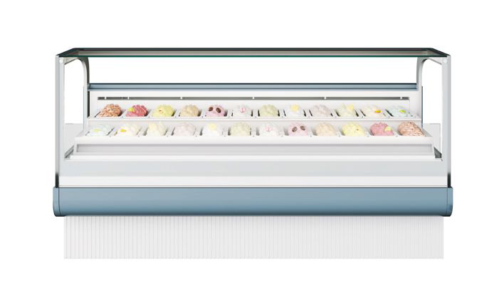 VITRINE A GLACE GELATO QUADRO 12 BACS BLANC ET BLEU